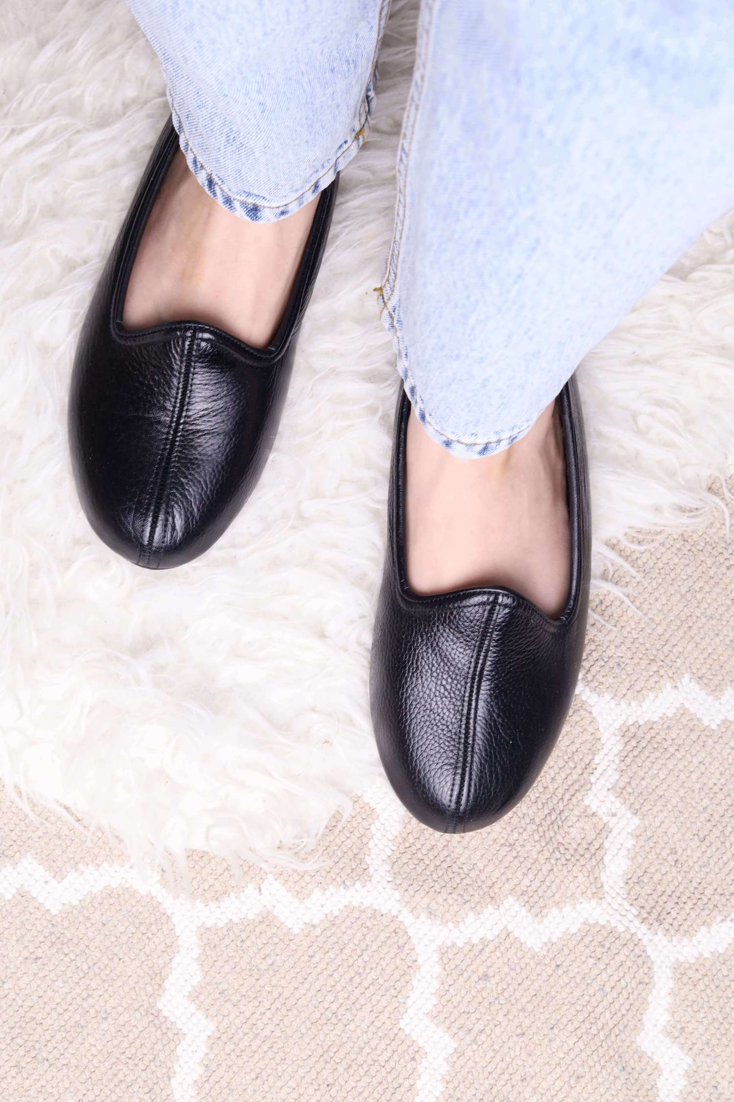 Siyah Hakiki Deri El Yapımı Patik